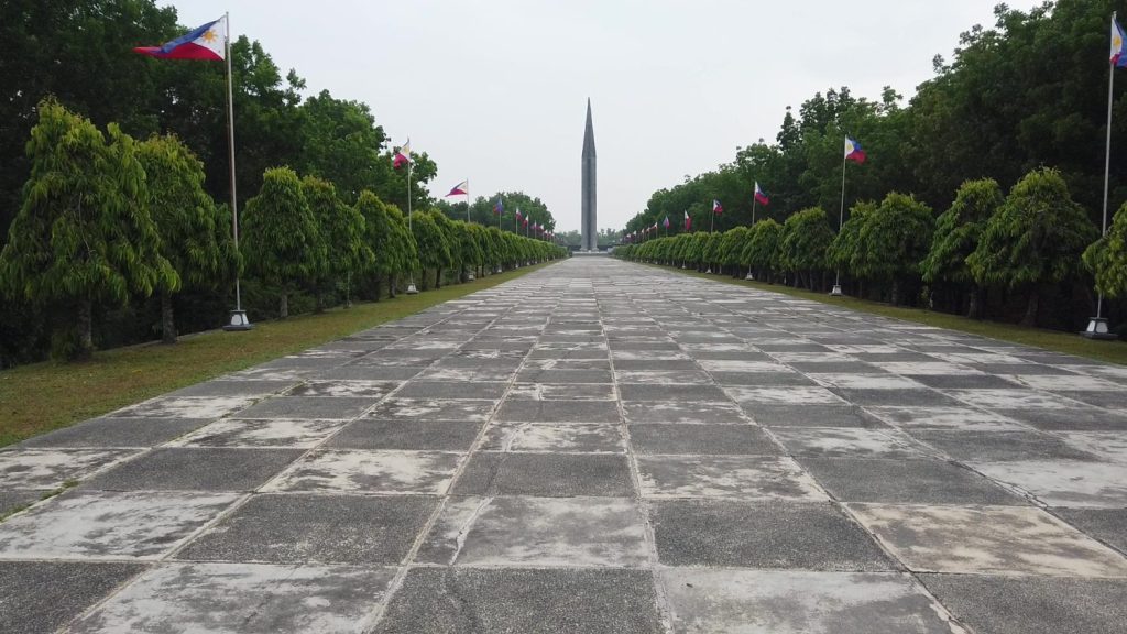 塔まで真っすぐ伸びる白黒のタイルのような道と左右に並ぶフィリピンの国旗が映えるが、嘘のように人が少ない。