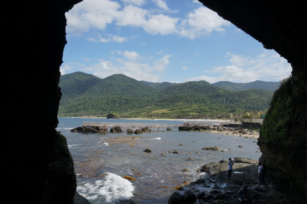 岩から約2分で Bantay Abot Cave へ着く。ここは先ほどの岩のサイズと同じくらいの空洞がある洞窟。洞窟の中に入ると言うより、くぐると隣のビーチが見える。