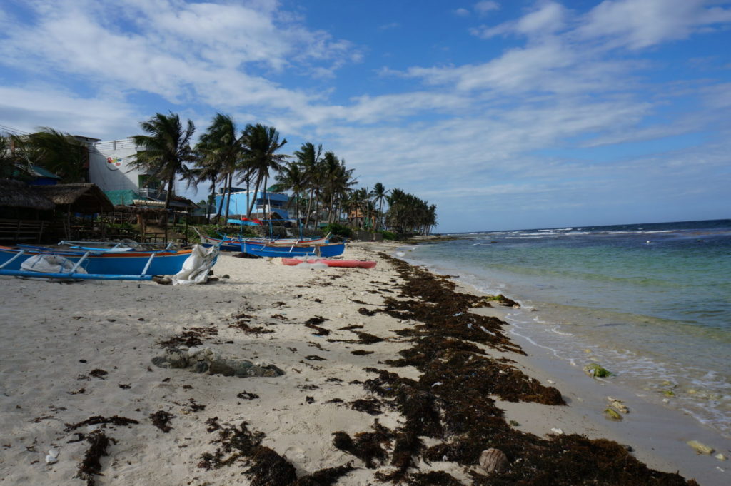 ぱっと見は確かにきれいなビーチだが、何か様子がおかしい。よく見るとビーチは海藻だらけで、あまりきれいな感じがしない。どちらかと言うと、漁に使う船の停泊場所?